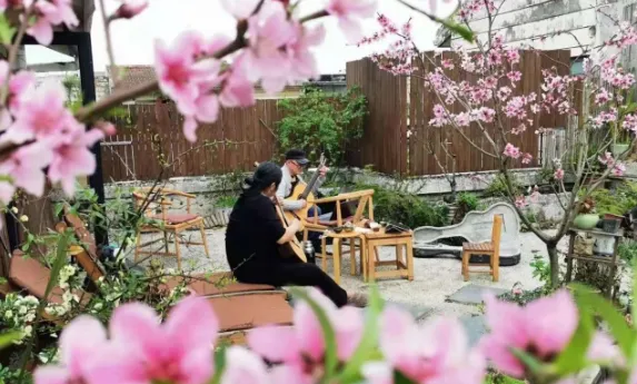 2021辛丑年杏月,橡树与友人西岭野草等闲园唱和。摄影者为吉他演奏家郑庆红。