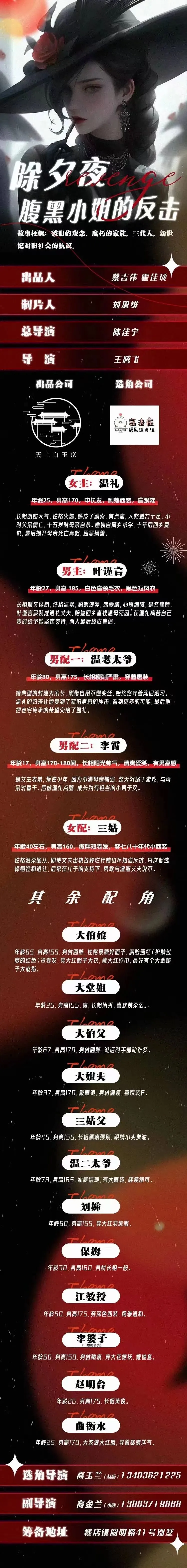 本栏目发布组讯由小编采集与业界共享,组讯如有变化请以实际情况为准。如果遇到剧组收费情况,请谨慎对待并私信官微@戏客Seeker,我们会公示问题组讯并及时处理。谢谢。