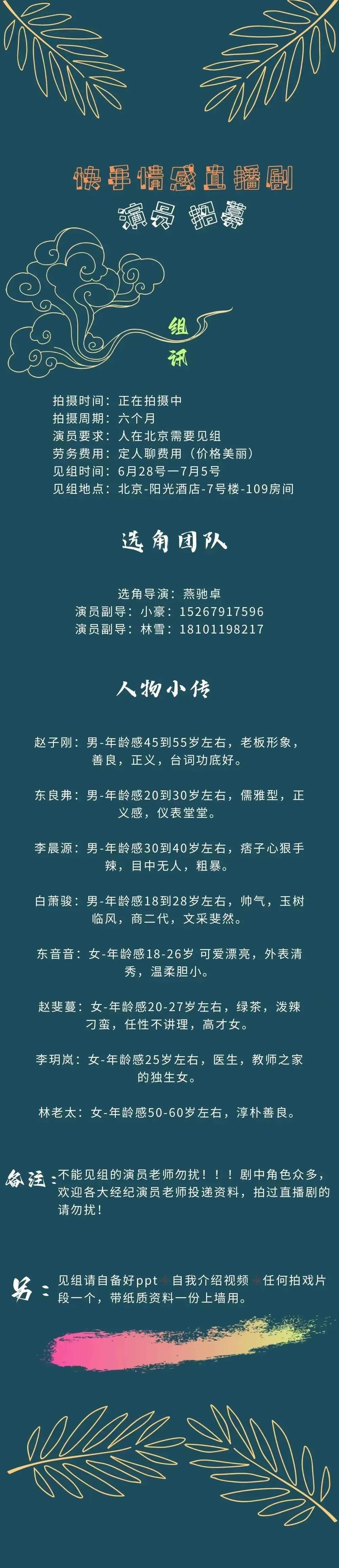 本栏目发布组讯由小编采集与业界共享,组讯如有变化请以实际情况为准。如果遇到剧组收费情况,请谨慎对待并私信官微@戏客Seeker,我们会公示问题组讯并及时处理。谢谢。