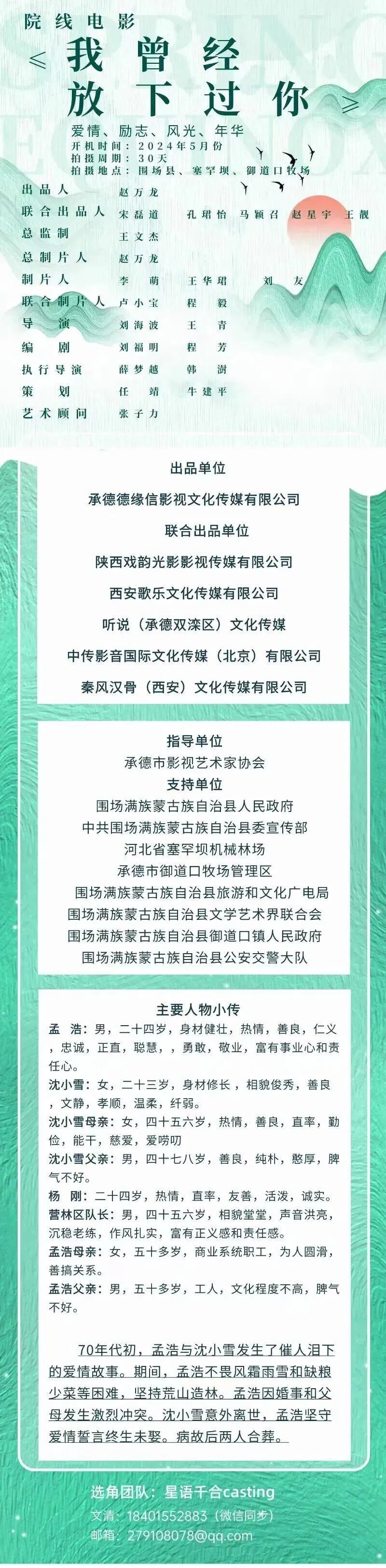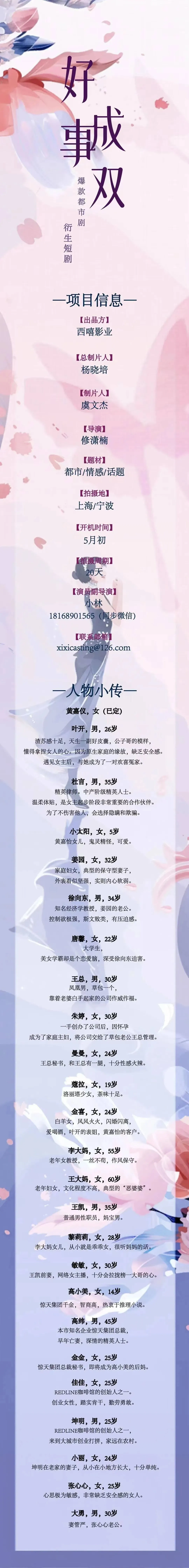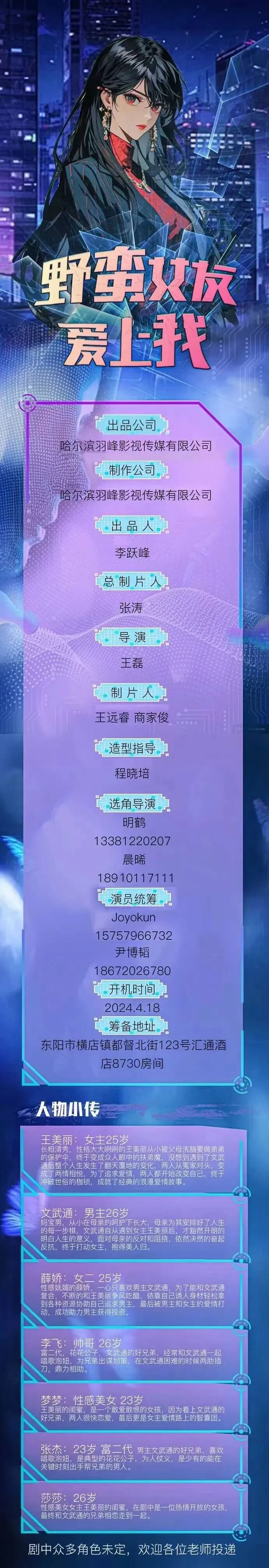 剧中另有众多角色诚邀加入,欢迎各大经纪公司及演员投递。