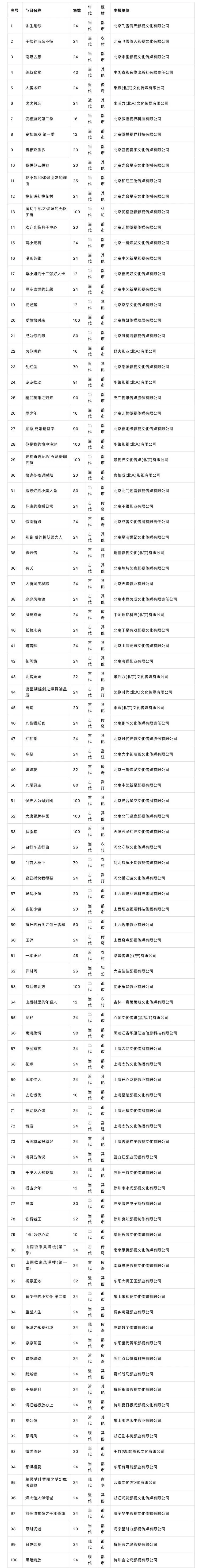 公安题材1部、24集,占比0.34%、0.21%;科幻题材5部、176集,占比1.68%、1.51%;传记题材1部、24集,占比0.34%、0.21%;
