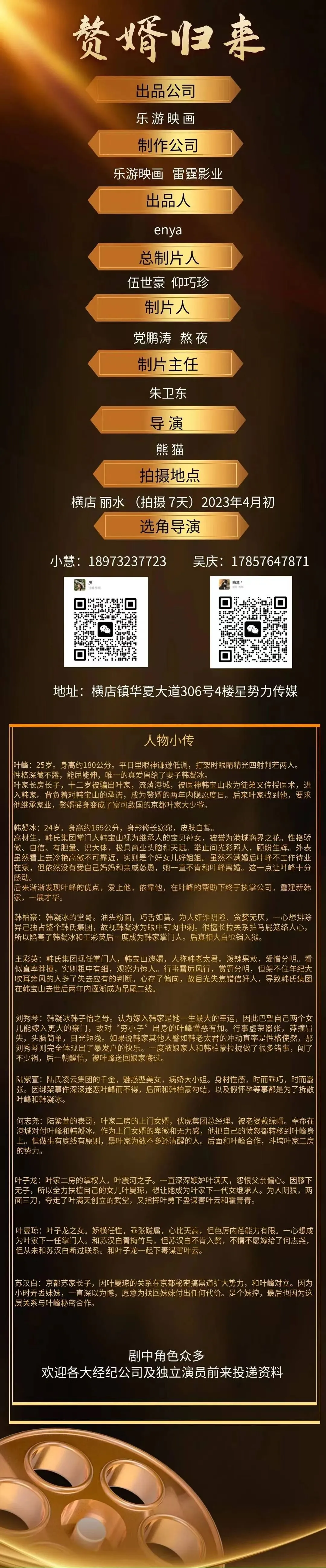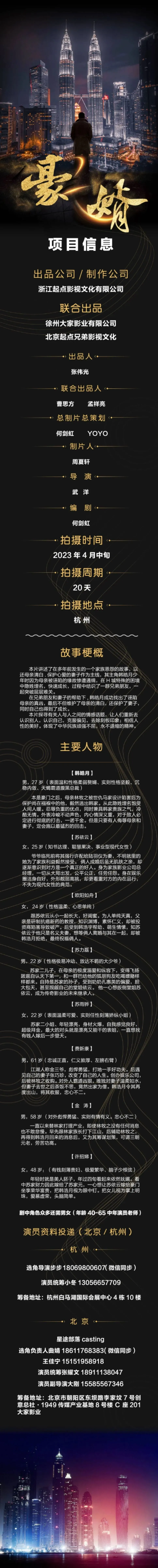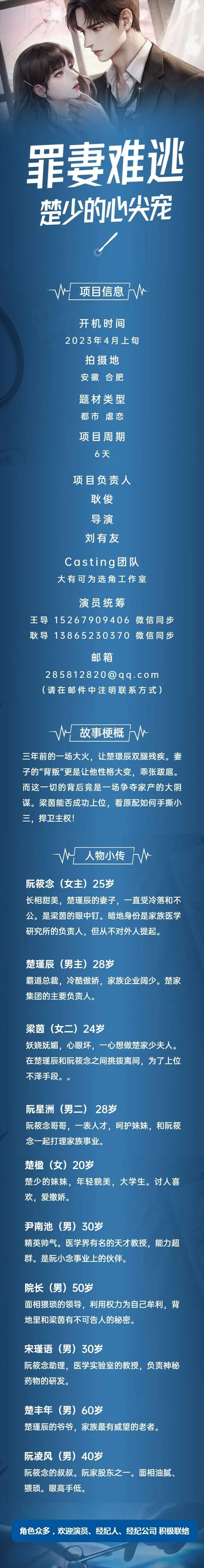 选角负责人:曲婧 18611768383(微信同步)