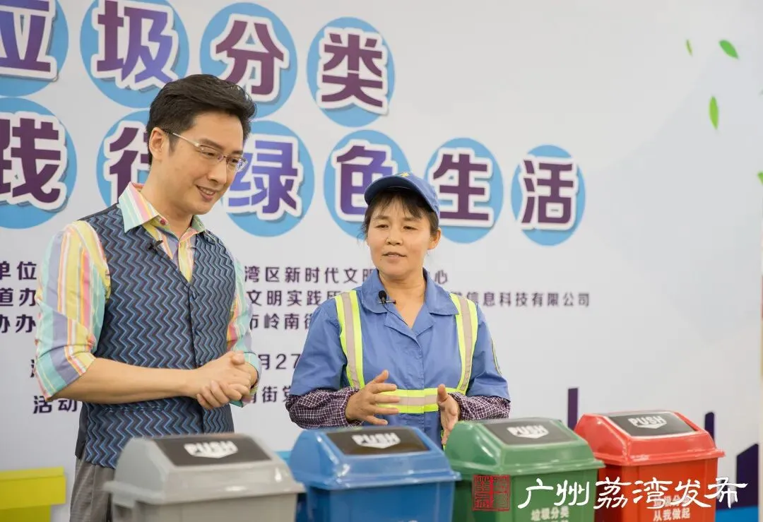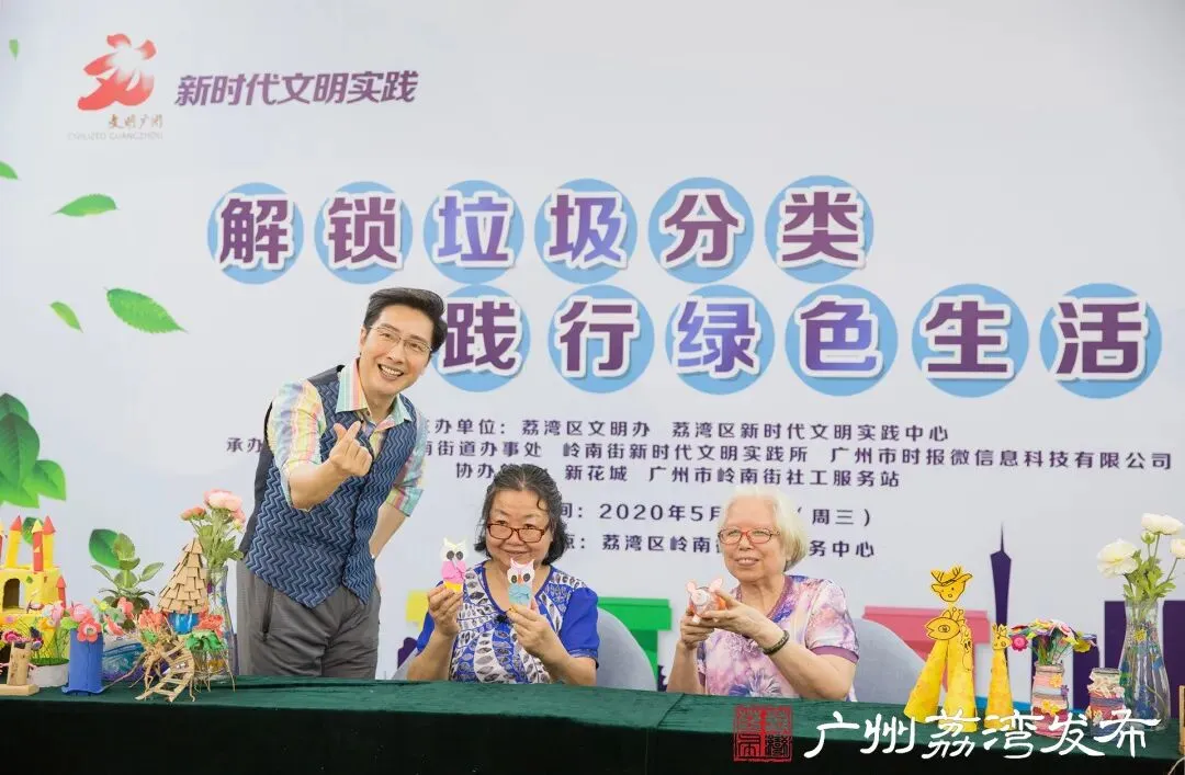 5月27日,由荔湾区文明办、荔湾区新时代文明实践中心主办,荔湾区岭南街道办事处、岭南街新时代文明实践所、广州市时报微信息科技有限公司承办的“解锁垃圾分类 践行绿色生活”——2020年垃圾分类活动在岭南街党群服务中心举行,活动首次以“网络直播”的形式将垃圾分类知识辐射全区。据了解,本次直播邀请了奋战在垃圾分类一线的环卫工人担任“主角”,以自身经验将生活垃圾分类知识用居民易于接受、乐于参与、产生共鸣的形式呈现。