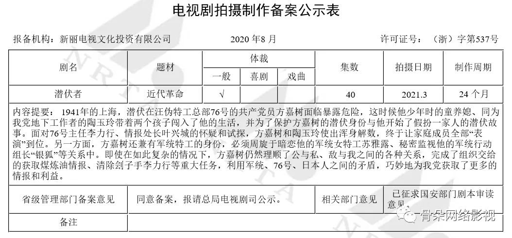 最新备案剧集不仅数量创新高,亦不乏一些令人惊喜的身影存在。如新丽传媒的《潜伏者》,柠萌影业的《南京爱情“事故”》,马伯庸同名小说改编的电视剧《风起陇西》,丁墨小说改编而来的网剧《乌云遇皎月》。