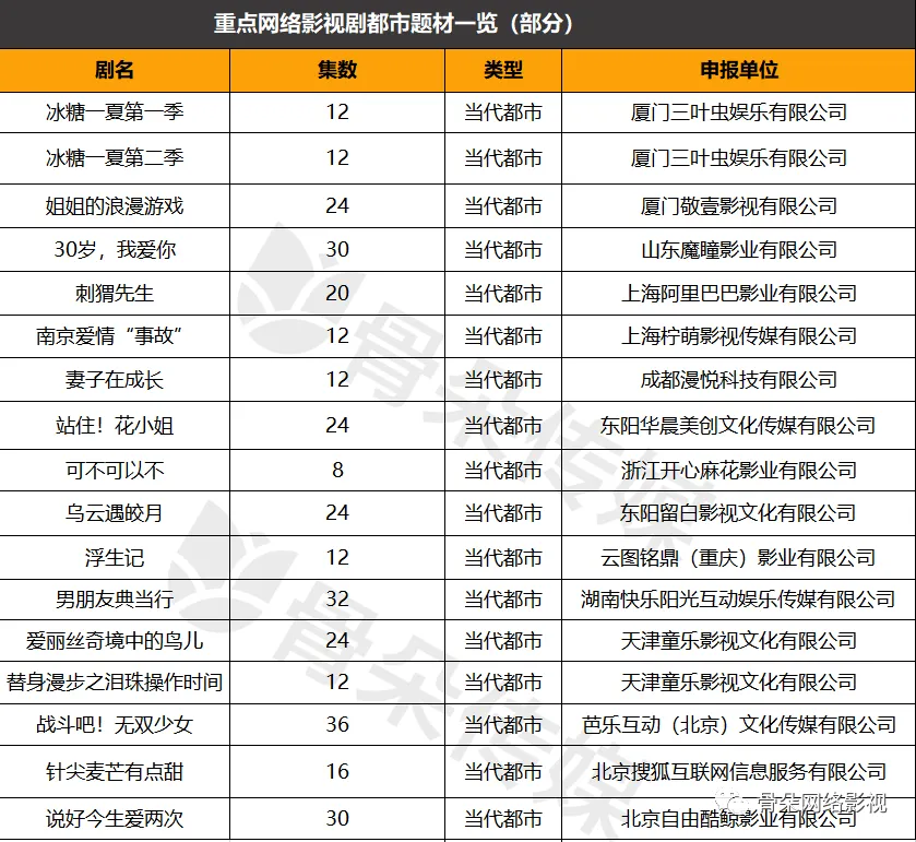 除此之外,唐德、慈文、唐人均新增了备案剧目,腾讯影业、爱奇艺和芒果在都市剧上有所布局,电影赛道选手开心麻花和路阳的公司自由酷鲸也出现在了7月备案网剧中,剧集市场越来越热闹了。