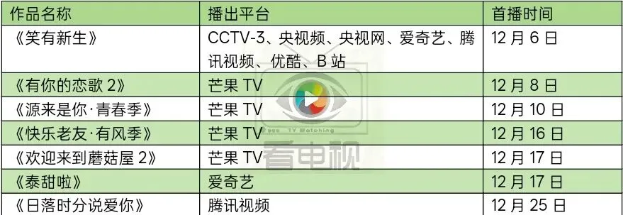 据“看电视”的不完全统计,12月综艺上新7部。