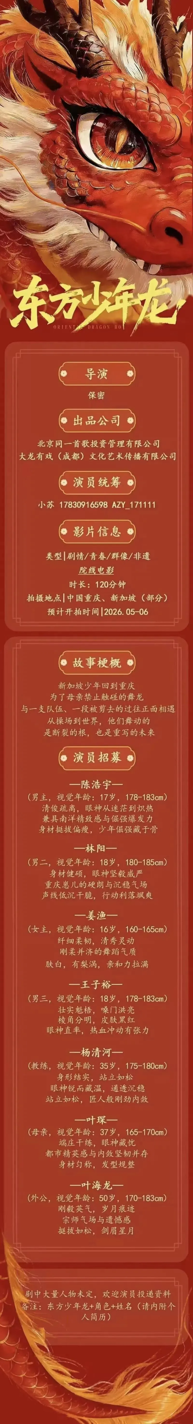 选角联系人:全玉东18006521909