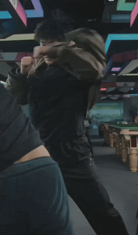 在惩治便利店毛贼的一幕中,韩川的肌肉记忆被瞬间唤醒。闪转腾挪、见招拆招,剧集巧妙地将便利店的搏斗与职业赛场的角逐进行交叉剪辑。当下的狭窄过道与记忆中的宽阔擂台重叠,赋予了动作极致的节奏美感,也高效交代了角色的辉煌过往。