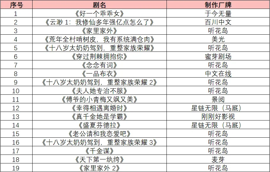 而位列19大爆款榜单的这两部男频,可以看出这块在提供爽感之余,其实更强调逻辑和干货型叙事,要有不输于长剧的正统叙事和强劲文本,才有望出圈。