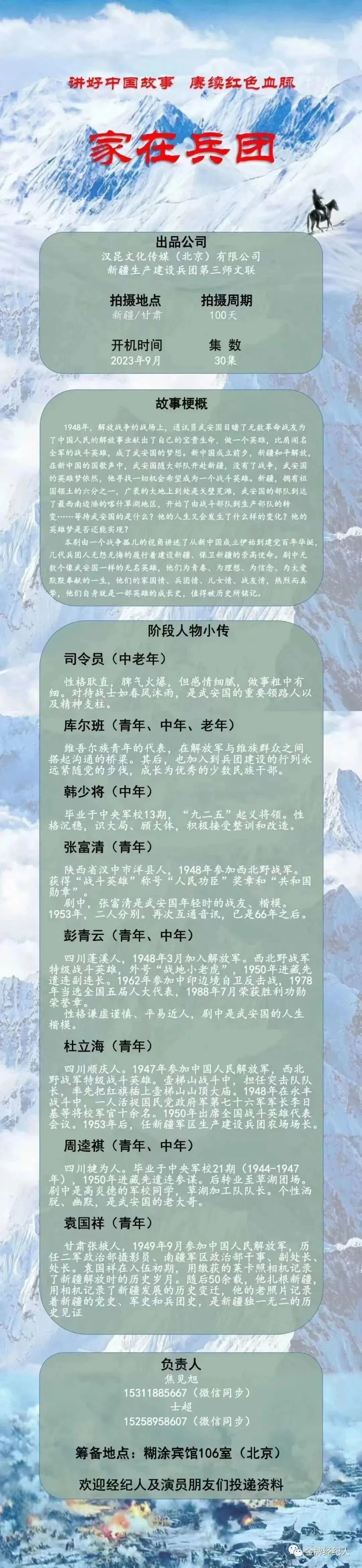 出品公司:汉昆文化传媒(北京)有限公司、新疆生产建设兵团第三师文联