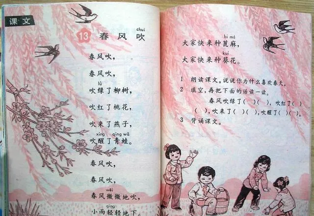 以前我们捧着这些书就能把一个春天握在掌心里,操场上的风能从插画里吹出来,河岸边的绿能从拼音上长出来,现在孩子们的书更亮更厚,知识也快,屏幕一划就到海那边去,可一阵风翻过旧页角,那些**“春天到了”**的短句还在耳边,哪一篇让你一眼就回到教室中央,哪一页让你想起谁在你旁边念错了一个音,留言里说说吧,我们这些同龄人还在等那声朗读在心里接上去。