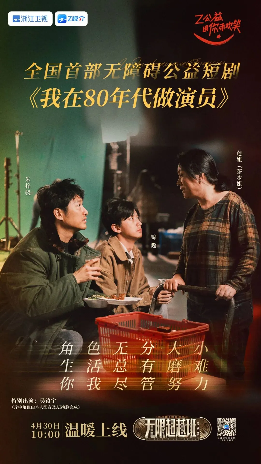 浙江卫视(中国蓝新平台)“Z公益”联合《无限超越班》第二季推出全国首部无障碍公益短剧《我在80年代当演员》,于今天(4月30日)10:00温暖上线。该短剧是Z公益——“春「YI」盎然”系列活动之“让我的声音成为你的眼睛”特别公益行动中的重要一环,由《无限超越班》第二季艺员锦超、朱梓骁主演,节目监制吴镇宇特别出演(片中角色由本人配音及AI换脸完成);在浙江省盲人协会、杭州市盲人协会指导下,邀请专业人士增补配音解说,助力视障群体“看到”并“看懂”影视作品,一同感受光影的魅力。