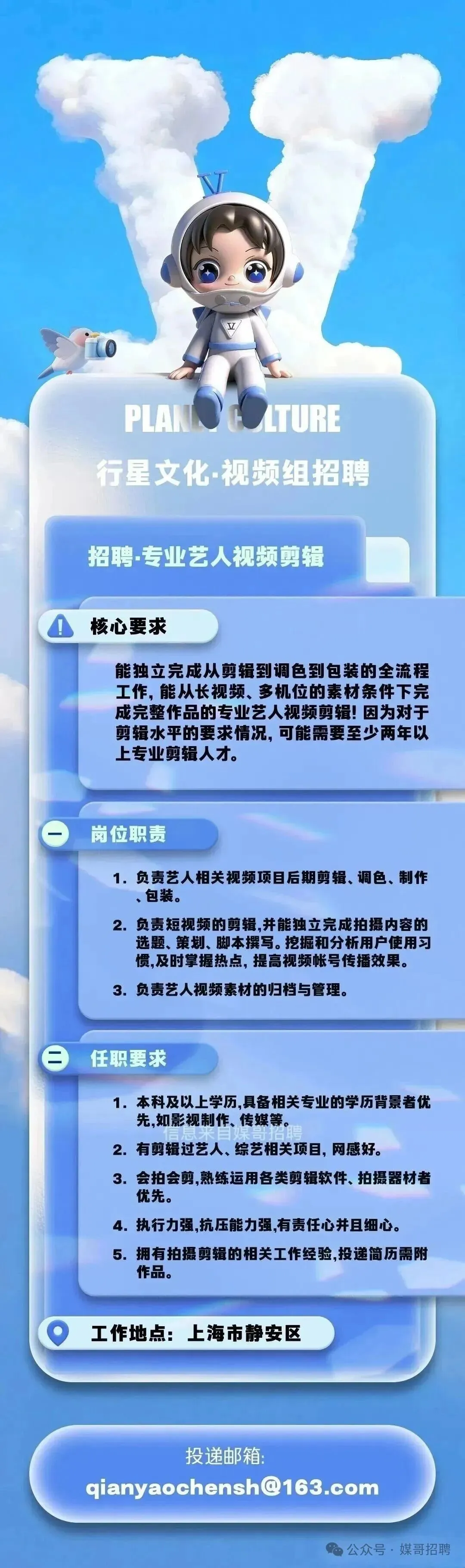 张杰行星文化视频组招聘(上海)&都市短剧项目招聘编剧 / 导演(上海)