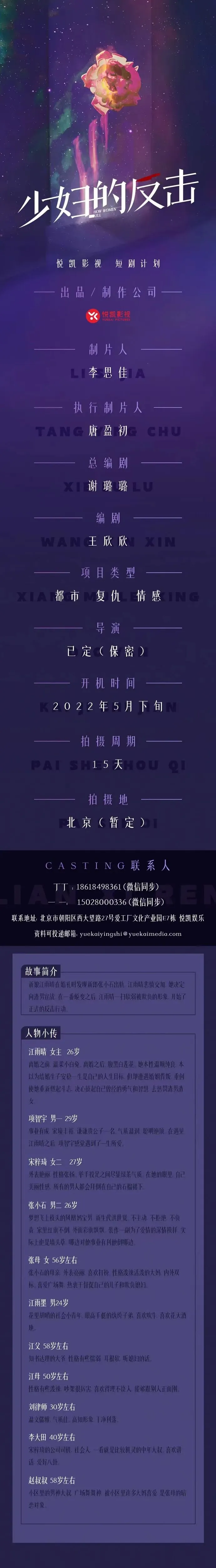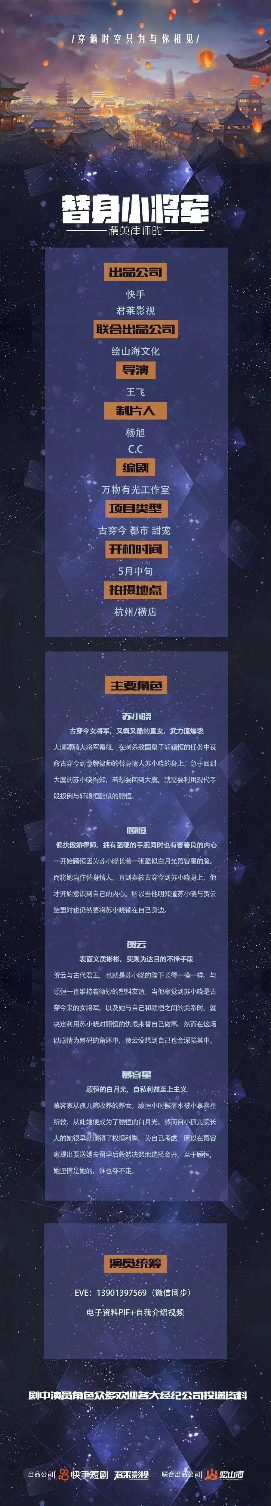 演员统筹:杨麒 18210857925(微信同步)