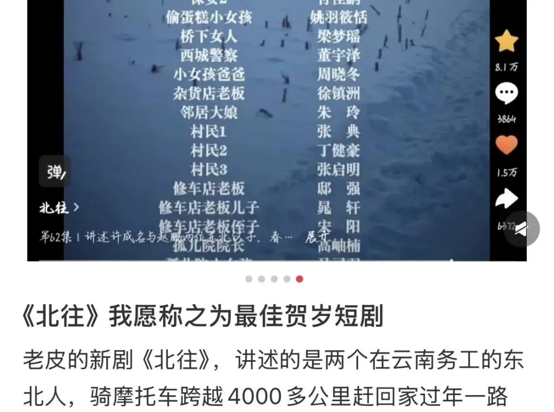 除夕前,以春运为主题的《北往》上线,把返乡赶路的人和留守的人都看哭了,弹幕里全是“这不就是我吗”。