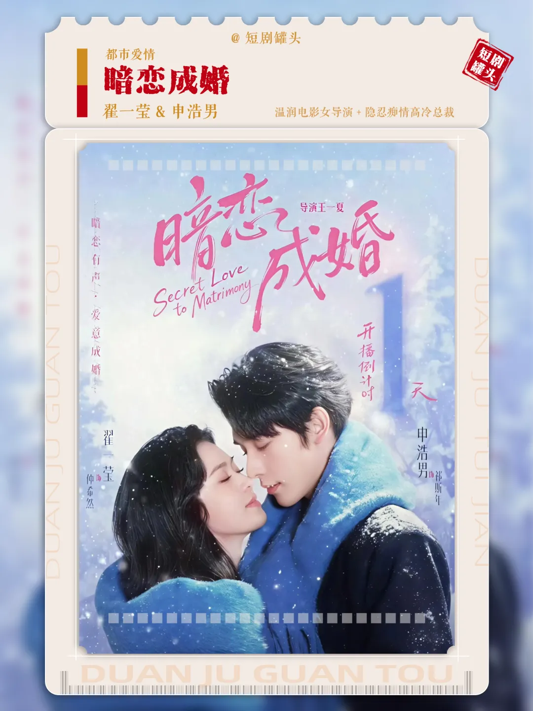 翟一莹、申浩男主演的都市爱情横屏短剧《暗恋成婚》正在热播!暗恋有声,爱意成婚!