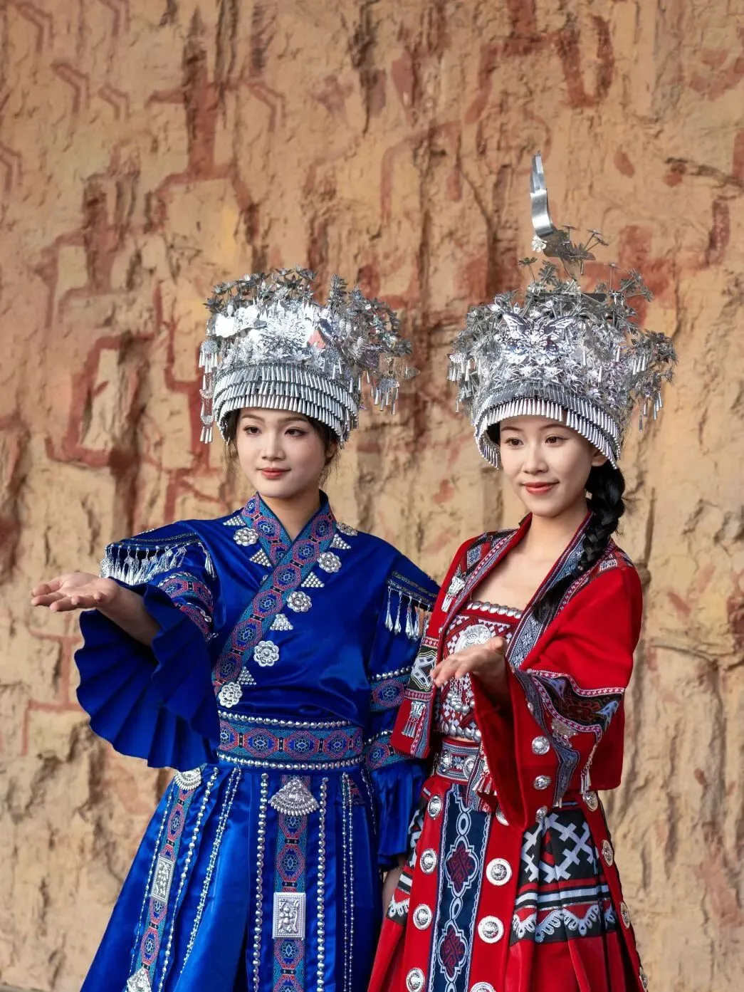 作为世界文化遗产,花山岩画上那些赭红色的“小红人”、铜鼓图案,是战国至东汉时期骆越先民留下的文明印记,镌刻着古人的祭祀虔诚与生活热忱,更是壮族文化的根脉所在。剧中壮锦的纹样灵感,便源自岩画的古朴线条;黎央央守护故土、敬畏天道的信念,也与岩画所传递的先民智慧一脉相承。当镜头掠过临江峭壁上的千年岩画,古老图腾与剧中的壮锦纹路交相辉映,仿佛穿越两千年,让骆越先民的精神与当代故事完成一场隔空对话。