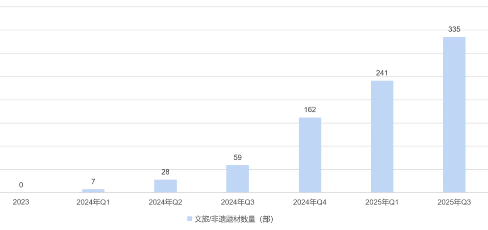 2024年1月,广电总局发布“跟着微短剧去旅行”创作计划,标志着微短剧跨界融合的正式启动。2025年,“微短剧+”行动计划全面升级,在“跟着微短剧去旅行”的基础上,增加“跟着微短剧来科普”“跟着微短剧学经典”“微短剧里看非遗”等创作计划。这一政策导向直接推动了题材的多元化扩容——2025年10月,重点微短剧备案题材已从9月的13项扩展至15项,新增“国家安全题材”和“国际传播题材”两大类别;科幻、农村题材占比也显著提升。
