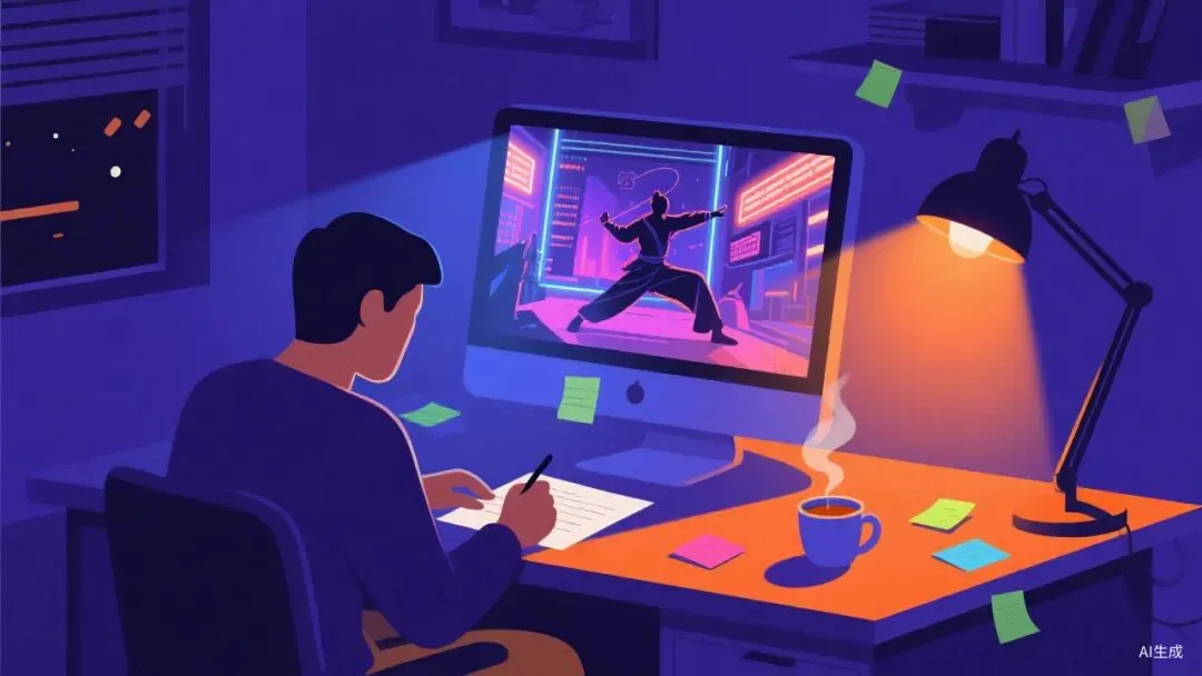 这里要跟大家说一句掏心窝子的话: AI 第一次给我写的剧本,简直没法看。孤月穿着一身机甲拿着光剑,跟武侠半毛钱关系都没有,剧情走向也套路得像流水线产品——三句话没说完就开始谈恋爱,反派的存在感比路人甲还低。我前前后后改了五六版,反复在提示词里加风格限制、调角色动机,才终于找到那种"冷峻中带着悲悯"的感觉。