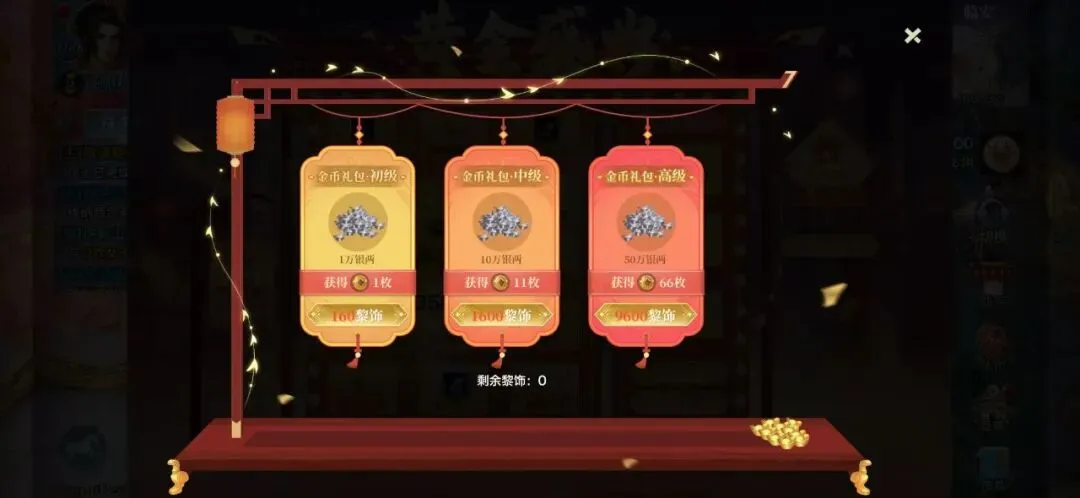 少侠在该活动中消耗黎饰可任意购买三个档位礼包获得不同数量的【纳福令】,消耗纳福令即可进行黄金盛典抽奖!